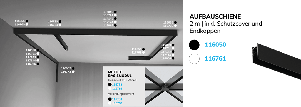 - Vielfältige Anwendungsmöglichkeiten: Ob deckenbündige Einbauschienen oder Aufbau- und Pendelschienen – Track 48 bietet höchste Flexibilität für verschiedenste Lichtinstallationen. Komplexere Konfigurationen sind dank Eckverbindungen ebenfalls mühelos umsetzbar.
