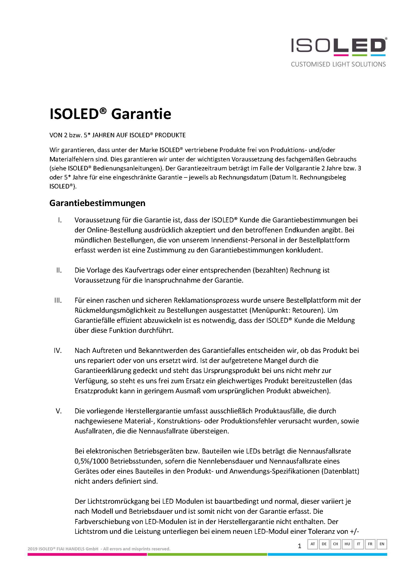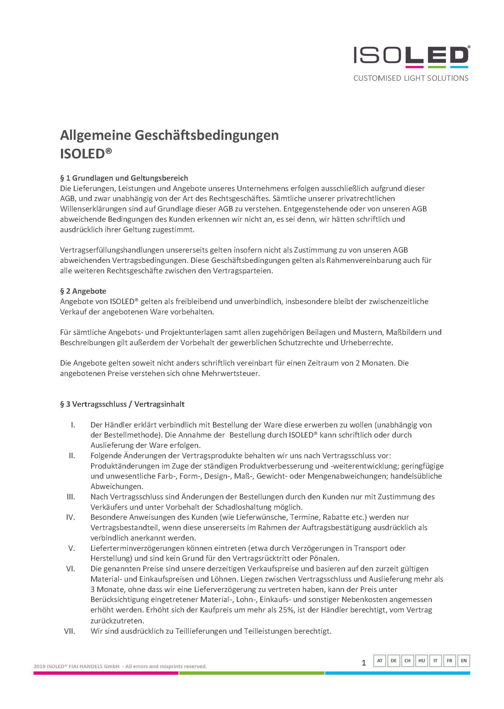 Angebote von ISOLED® gelten als freibleibend und unverbindlich, insbesondere bleibt der zwischenzeitliche Verkauf der angebotenen Ware vorbehalten.