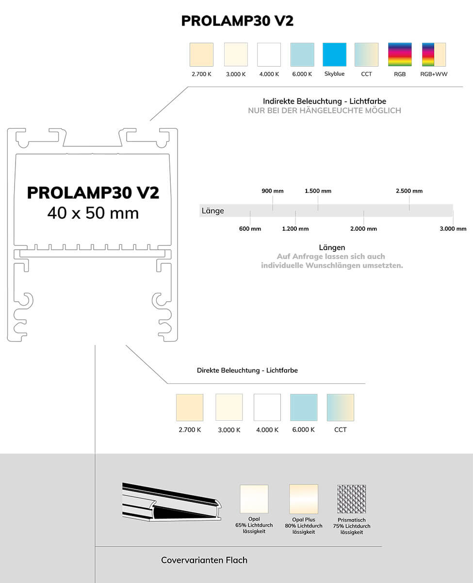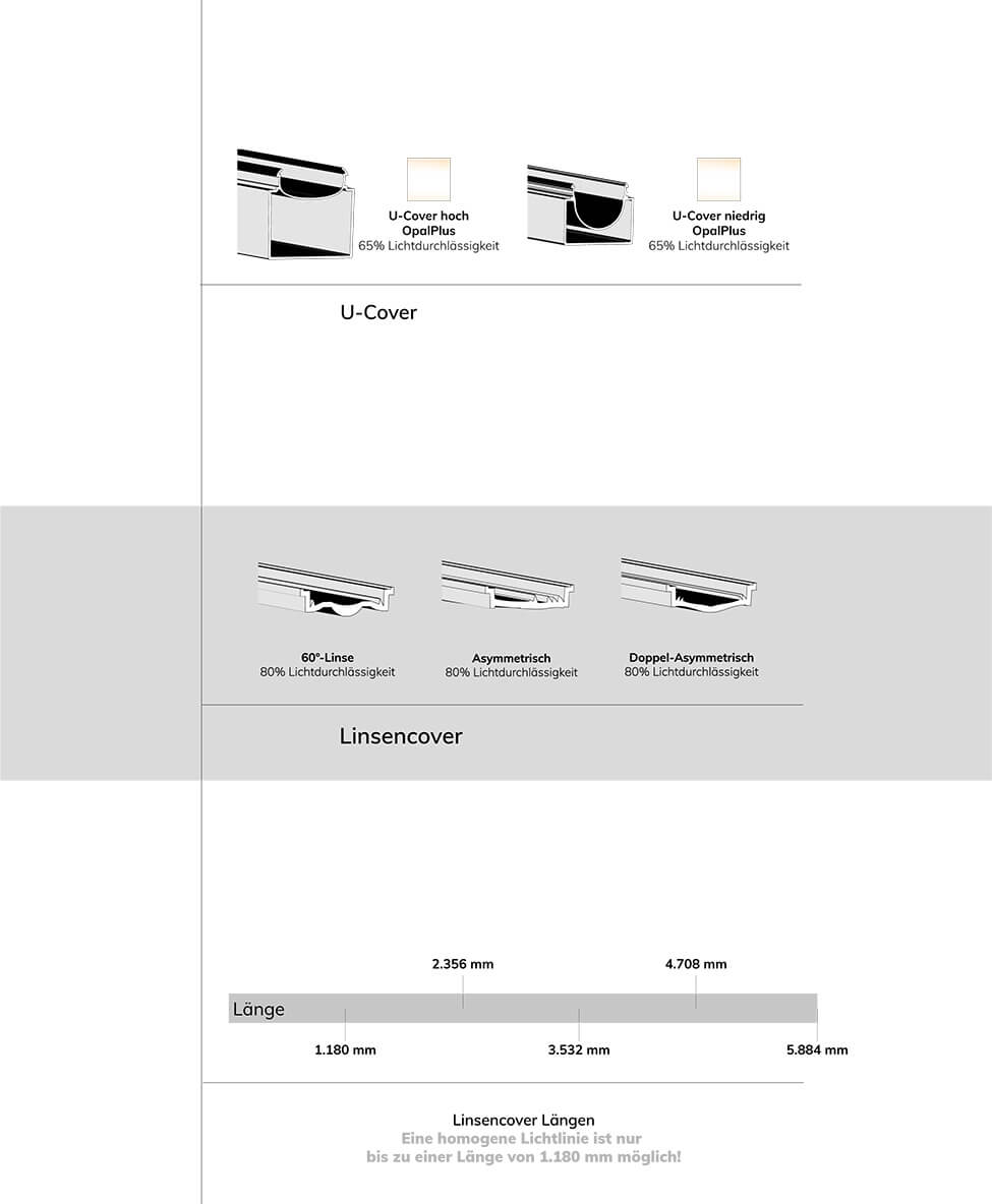 - Breite Auswahl an Dimmvarianten, Licht- und Profilfarben sowie Abdeckungen: Gestalten Sie die Beleuchtung ganz nach Ihrem Geschmack.