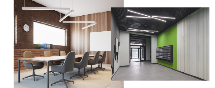 - Verschiedene Licht- und Profilfarben: Schaffen Sie eine individuelle Atmosphäre in Büros, Konferenzräumen und Fluren.