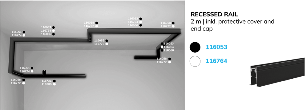 - Versatile Applications: Whether flush-mounting tracks or surface-mounted and pendant tracks – Track 48 offers the highest flexibility for various lighting installations. More complex configurations are effortlessly achievable thanks to corner connectors.