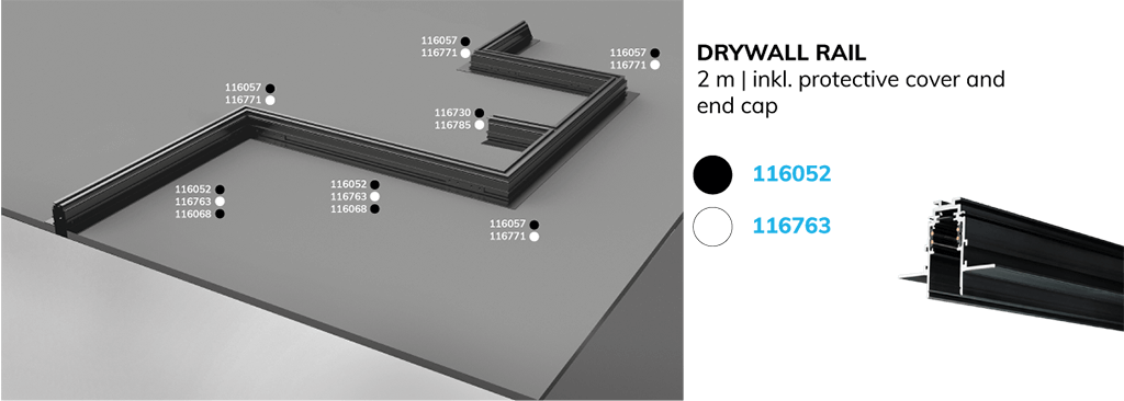 - Safety and User-Friendliness: The track system operates in low voltage, ensured by the touch-safe icon. Both the installation and later adjustment of the lights can be easily done by non-professionals after professional installation.